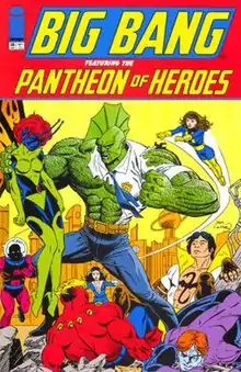 The Pantheon of Heroes (a.k.a. the Pantheon of Super Heroes) is a 30th-century superhero team based on the Legion of Super-Heroes (former Legion artist, Dave Cockrum, drew the cover for the Pantheon's first story) and was introduced in Big Bang Comics. Pantheon of Heroes first appeared in Big Bang #s 12, 14 and 18 – the “TimeBomber Saga” guest-starring Erik Larsen’s Savage Dragon. Mark Lewis, the man responsible for so many Big Bang logos designed a few of the earliest characters, and the slightly later Butterfly Queen.