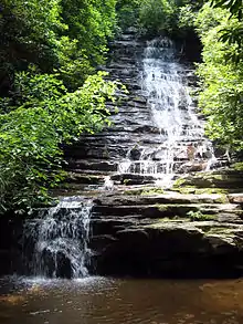 Panther Falls is the first of two waterfalls on the Angel Falls Trail in Rabun County, Georgia. The second waterfall on the trail is Angel Falls.[1] The falls are each about 50' in height on Joe Branch Creek. The trail begins at the Rabun Beach Camping Area #2 and is a moderately strenuous 0.5 mile hike to Panther Falls with Angel Falls and additional 0.5 mile.