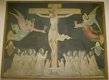 Born in Florence, Paolo Schiavo enrolled in the Guild of Doctors and Apothecaries (Arte dei Medici e Speziali) in 1428. According to Vasari, he was a follower of Masolino.[1] In 1435 he went to Castiglione Olona with Masolino where he realized the first section of the apse's right wall. Frescoes by Schiavo adorn the chapel on the left in the church of San Michele a Castellaccio di Sommaia, near Florence.[2] Among his further dedications were frescoes of the Virgin and Child Enthroned with Saints for the church of San Miniato al Monte with an unusually pink pseudo-architectural framework (1436), The Crucifixion Adored by Nuns (1447-8), an Adoration of the Magi, and an Annunciation with various saints. He made several other works, all of which bear his signature and their corresponding dates.[2] He died in Pisa.