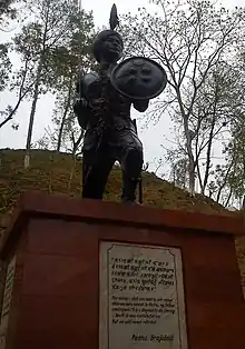Paona Brajabasi[1] was a Manipuri military officer. He was born in 1833 and later entered the military of the Manipur Kingdom, reaching the rank of major by 1891. The same year he fought in the Anglo-Manipur War against the British Empire. Following the defeat of his troops in a skirmish with the British, his adversaries offered to spare Brajabasi's life if he entered their service. Brajabasi refused and was subsequently executed. This act entered Manipur's popular imagination and Brajabasi has since been commemorated by a statue.[2]
