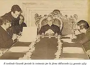 In April 1984, Vatican Secretary of State Agostino Casaroli asked separately the two delegations for their proposals for a final solution.