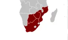Parabuthus transvaalicus is found in deserts, scrublands and semi-arid regions of Botswana, Mozambique, Zimbabwe, some parts of the Namib Desert and South Africa.[3]