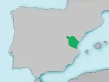 It is endemic to the Iberian peninsula, been present in the basins of the rivers Turia and Mijares.