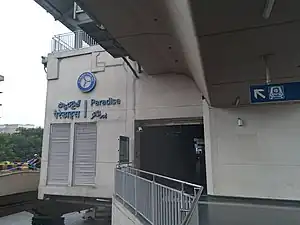 Paradise metro station is located on the Blue Line of the Hyderabad Metro.[2][3] It is near the Osmania University PG College, Gymkhana Cricket ground, Paradise Fire station, Yatri Nivas, Paradise Restaurant, BSNL Office and Sunshine Hospital.[1]