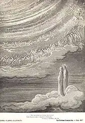 Paradiso (Italian: [paraˈdiːzo]; Italian for "Paradise" or "Heaven") is the third and final part of Dante's Divine Comedy, following the Inferno and the Purgatorio. It is an allegory telling of Dante's journey through Heaven, guided by Beatrice, who symbolises theology. In the poem, Paradise is depicted as a series of concentric spheres surrounding the Earth, consisting of the Moon, Mercury, Venus, the Sun, Mars, Jupiter, Saturn, the Fixed Stars, the Primum Mobile and finally, the Empyrean. It was written in the early 14th century. Allegorically, the poem represents the soul's ascent to God.