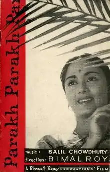 Parakh is a 1960 Indian Hindi film, based on a story by famed music director Salil Chowdhury, that displays Bimal Roy's lighter side and is a satirical look at Indian democracy in its early years. Bimal Roy received the Filmfare Best Director Award for the film.[2] The ensemble cast was led by Sadhana and Basanta Choudhury. The film has music by Salil Choudhury, featuring Lata Mangeshkar's hit "O Sajana Barkha Bahaar Aai".[3]
