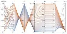 By arranging the axes in 3-dimensional space (however, still in parallel, like nails in a nail bed), an axis can have more than two neighbors in a circle around the central attribute, and the arrangement problem gets easier (for example by using a minimum spanning tree).[9] A prototype of this visualization is available as extension to the data mining software ELKI. However, the visualization is harder to interpret and interact with than a linear order.