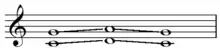 Parallel fourths (consecutive perfect fourths) are allowed, even though a P4 is the inversion and thus the complement of a P5.[1] The literature deals with them less systematically however, and theorists have often restricted their use. Theorists commonly disallow consecutive perfect fourths involving the lowest part, especially between the lowest part and the highest part. Since the beginning of the common practice period, it has been theorized that all dissonances should be properly resolved to a perfect consonance (there are few exceptions). Therefore, parallel fourths above the bass are generally dismissed in voice leading as a series of consecutive unresolved dissonances. However parallel fourths in upper voices (especially as part of a parallel "6-3" sonority) are common, and formed the basis of fifteenth-century fauxbourdon style. As an example of this type of allowed parallel perfect fourth in common practice music, see the final movement of Mozart's A minor Piano sonata whose theme in bars 37–40 consists of parallel fourths in the right hand part (but not above the bass).