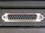 A DB-25 connector often used for a parallel printer port on IBM PC compatible computers, with the printer icon.