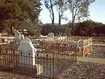 Located on Bolivar Road, Paralowie, the now-closed cemetery is the only reminder of the Burton Methodist Church (used to stand by the side of Burton Road), built-in 1915, closed in 1950 and later demolished, and now marked with a memorial stone. An earlier church built in June 1858 also existed here and was used as a school until the 1950s.[3] The first burial was that of George Diment, aged 101⁄2 years, in December 1866; burials continued until 1957, after which there was a substantial gap until the last burial in April 1971. Attempts have been made to restore the vandalised headstones in the cemetery because it is a site of historical significance.[4]