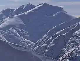 ![]() North aspect in winter (Isosceles Peak behind, left) | |