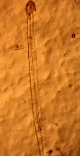 Parasagitta elegans (prev. Sagitta elegans). Body of adult animal can grow up to 45 mm, is narrow, firm and opaque (this image: animal very see-through. Visible opaque animal needs better picture).