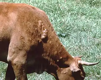 - Guglielmone, A.A., et al. (1999) Skin lesions and cattle hide damage from Haematobia irritans infestations. Medical and Veterinary Entomology, 13: 324-329. doi:10.1046/j.1365-2915.1999.00167.x.