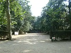 When the Concordat of 1801 was signed, the bishop recovered his palace, but not the gardens which remained the property of the city. Source of long conflicts, the only access to the garden remained the bishop's palace.[16] The city opened an access by the rue de Fougères, but the bishop said "he is embarrassed by the visitors, who passed right by his windows".[16] In 1812, an access leading to the rue de la Palestine made it possible to get around the problem. From 1811 to 1814, a legal battle ensued between the bishopric, which wanted to recover its old property, and the city of Rennes, which wanted to keep it. In 1814, the count of Ferrières, extraordinary commissioner sent to Brittany by Louis XVIII, decides that the bishop can recover his old pleasure garden: the public promenade is thereby shortened.[18]