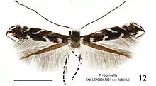 The locust digitate leafminer (Parectopa robiniella) is a moth of the family Gracillariidae. It is native to North America, but was accidentally introduced to Italy, where it was first found in 1970. It has now been recorded from Italy, France, Germany, Slovenia, Croatia, Austria, Serbia, Slovakia, Romania, Ukraine and Hungary.