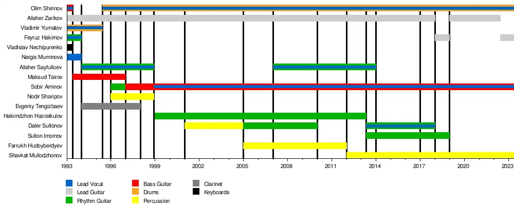- Alisher Sayfulloev — vocals, guitar (1994-1998), (2007-2014);