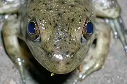 The parietal eye is found in the tuatara, most lizards, frogs, salamanders, certain bony fish, sharks, and lampreys.[7][8][9] It is absent in mammals, but was present in their closest extinct relatives, the therapsids, suggesting it was lost during the course of the mammalian evolution due to it being useless in endothermic animals.[10] It is also absent in the ancestrally endothermic ("warm-blooded") archosaurs such as birds. The parietal eye is also lost in ectothermic ("cold-blooded") archosaurs like crocodilians, and in turtles, which may be grouped with archosaurs in Archelosauria.[11] Despite being lepidosaurs, as lizards and tuatara are, snakes lack a parietal eye.[12][13]
