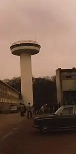 The Marly tower, moved to the observatory in 1685 for mounting telescopes, was demolished in 1705.[28] The Marly tower was originally made for the Versailles water supply system (see Machine de Marly), but was moved to the southern gardens area near the Paris Observatory.[29] The tower could hold the objective lens for extremely long focal length aerial telescopes.[29]