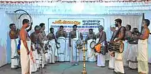 ParishaVadyam is a genre of percussion music that originated before centuries in Ramamangalam, when Panchavadyam was not there in the mainstream.[1][2] Or in other words we can call Parisha Vaadyam "The Mother of Panchavadyam". Like Panchavadyam and all other Melams, Parishavaadyam also characterised by a pyramid like rhythmical structure.