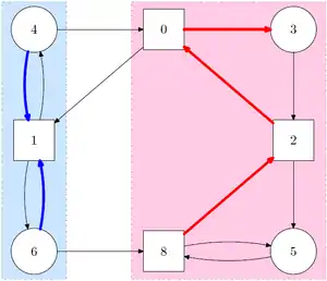 In other words, one starts with the initial set U. Then, for each step () one adds all nodes belonging to player 0 that can reach the previous set () with a single edge and all nodes belonging to player 1 that must reach the previous set () no matter which edge player 1 takes.