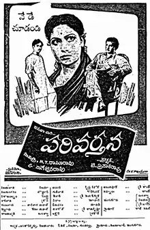Parivartana (transl. Realization) is a 1954 Indian Telugu-language drama film directed by T. Prakash Rao.[1] It stars N. T. Rama Rao, Akkineni Nageswara Rao and Savitri, with music composed by T. Chalapathi Rao. The film is based on Srirama Murthy Pinisetti's novel Anna-Chellelu.[2]