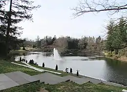 The area around the large forest pond, near the entrance, is beautifully landscaped with an abundance of flowering plants along the trails. By the forest pond is the Stone Bank where Queen Wilhelmina has painted.