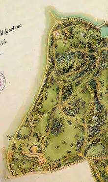 Park Glienicke, (German: Park Klein-Glienicke or Glienicker Park) is an English landscape garden in the southwestern outskirts of Berlin, Germany. It is located in the locality of Wannsee in the Steglitz-Zehlendorf borough. Close to Glienicke Bridge (known as Bridge of Spies) the park is open to the general public. The park is part of the UNESCO World Heritage Site Palaces and Parks of Potsdam and Berlin (Potsdam cultural ensemble).[1] Within the ensemble it is one of the five main parks, the others being Sanssouci Park, New Garden (Neuer Garten), Babelsberg Park and Peacock Island (Pfaueninsel). Regarding diversity in gardening styles within the Potsdam park ensemble Park Glienicke is only superseded by Sanssouci Park. Furthermore, it is a park especially characterized by one personality due to the intense involvement of Prince Charles of Prussia. The park covers approximately 116 hectares (290 acres)[2]