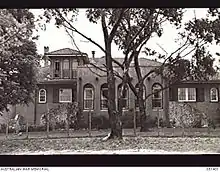 In 1944, during World War II, the Australian Army requisitioned The Chalet and the football ground, and set up The School For Eastern Interpreters[11] for Z Special Unit,[12] as well as a training facility for the Australian Special Wireless Group.[13][14][15][16][17][18][19] 400 personnel were stationed there, living in tents on the football ground. The army constructed the first water mains and connected the estate to the electrical grid.[20]