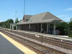 Park Ridge is one of two commuter railroad stations on Metra's Union Pacific Northwest Line in the city of Park Ridge, Illinois. It is officially located at 100 South Summit Avenue, and lies 13.1 miles (21.1 km) from the Ogilvie Transportation Center in Chicago.[2] In Metra's zone-based fare system, Park Ridge is in zone C. As of 2018, Park Ridge is the 33rd busiest of Metra's 236 non-downtown stations, with an average of 1,168 weekday boardings.[1]
