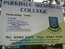 - "Parkdale Secondary College". Parkdalesc.vic.edu.au. Archived from the original on 17 March 2012. Retrieved 8 March 2012.