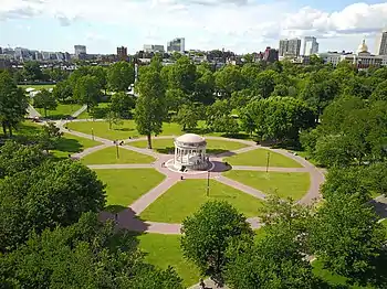 The Parkman Bandstand is a landmark bandstand located on the eastern side of the Boston Common in Boston, Massachusetts, United States.[1][2] It was built in 1912 from a design by Derby, Robinson & Shephard at a cost of $1 million on the site of the Cow Pond (also known as the Horse Pond), which had been filled in 1838 after cattle-grazing had been outlawed on the Common.