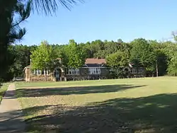 The Parks School is a historic former school building just north of Arkansas Highway 28 in the center of Parks, Arkansas. It is a single-story fieldstone structure, with a gable-on-hip roof, and several small gabled dormers on the long (south-facing) front facade. Two entrances are set in round-arch openings with keystones. The building has retained most of its original windows, doors, and other original hardware. It was built in 1940 with funding from the Works Progress Administration, and served as a school into the 1960s. It is now a local senior center.[2]