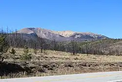 ![]() The mountain, viewed from State Highway 125, also showing damage from the 2020 East Troublesome Fire | |