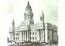 In 1872 legislation increased the House of Assembly by 10 members, effective from 1875, reflecting the increased colonial population. It was decided that a completely new building was needed for the expanding parliament. A commission, appointed by the Governor of South Australia, was set up in 1874 to adjudicate a design competition for the new building that would form the basis of ‘New’ Parliament House.[1] A design by prominent Adelaide architect Edmund Wright and his partner Lloyd Taylor was selected as the winner. This Greek Revival design featured ornate columns of the Corinthian order, impressive towers, and a grand dome.