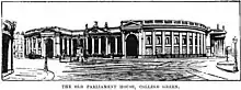 Chichester House was in a dilapidated state, allegedly haunted and unfit for official use. In 1727 parliament voted to spend £6,000 on a new building on the site. It was to be the world's first purpose-built two-chamber parliament building.