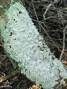 - Hale, Mason E. (1974). "New combinations in the lichen genus Parmotrema Massalongo". Phytologia. 28 (4): 334–339.