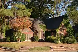 The Parnell-Sharpe House is a historic house at 302 North 2nd Street in McGehee, Arkansas. The 1+1⁄2-story brick house was built in 1936, and is probably unique in Desha County as an example of French Eclectic architecture constructed using local materials. The house is built out of red tapestry brick, and has a roughly T-shaped plan, with a projecting element in the front (west) facade that includes a tower topped by a conical roof. To the north is a single-story section that was originally a garage, but has been converted to interior space.[2]
