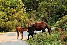 Worthy of mention are the Garrano (or Minho horse), a breed of small equine species who were ancestors of the Galician pony and Andalusian horse, which mostly live in the wild, but are a gentle breed with no significant fear of humans.[28] For a long time these horses permeated the farms of Vilarinho das Furnas (before it was inundated with the dam's construction), but later began to freely move between the Portuguese-Spanish border after 1979.[28]