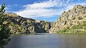 The Douro International Natural Park (Portuguese: Parque Natural do Douro Internacional) is a natural park in northeast Portugal. With 868 km2 (335 sq mi), it is one the largest protected areas in the country. It is located in the municipalities of Miranda do Douro, Mogadouro, Freixo de Espada à Cinta and Figueira de Castelo Rodrigo, spanning a lengthy area along the Douro River where it functions as the border between Portugal and Spain (hence "International Douro"). The park also includes the border area of the Águeda River. The park was created to protect the scenic landscape of the region, as well as its flora and fauna.