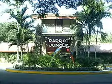 Founded in 1936 by Francis "Franz" & Louise Scherr, Parrot Jungle is one of the oldest tourist attractions established in the Miami area.[3][4] Scherr would often visit another attraction, Monkey Jungle, owned by Joe Drummond.[3] On one visit when Scherr was again making one of his many suggestions for improvement, Drummond became fed up and told him, "Go start your own jungle."[3] Scherr, who owned and operated a feed and supply store in Homestead, became intrigued with the idea of building an attraction where birds would "fly free".[3] Scherr leased 20 acres (81,000 m2) of hammock land for US$25 (equivalent to about $488 in 2021).[3] The site was previously a naturist resort.[3] Parrot Jungle was built as a winding nature trail dug through the coral rock and hammock land, indigenous to the area. All the natural plants were left undisturbed, and the entrance was built on Red Road.