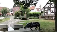 Only in the years between 1960 and 1970 did the village develop again. The village no longer had a rural character, especially after the roads were removed and the houses grew in size. Not only were homes built in the centre of the area, but they were also built on the lower hills. Among other things built were a school building, a Gymnasium, a deep well and an elevated tank for the water pipeline, a fire brigade equipment house, a town hall and a purification plant shared with the neighbouring municipality of Frammersbach.