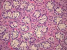 Testosterone has been used to successfully treat undervirilization in some [14] but not all [75] men with PAIS, despite having supraphysiological levels of testosterone to start with.[14][76] Treatment options include transdermal gels or patches, oral or injectable testosterone undecanoate, other injectable testosterone esters, testosterone pellets, or buccal testosterone systems.[77] Supraphysiological doses may be required to achieve the desired physiological effect,[14][26][78] which may be difficult to achieve using non-injectable testosterone preparations. Exogenous testosterone supplementation in unaffected men can produce various unwanted side effects, including prostatic hypertrophy, polycythemia, gynecomastia, hair loss, acne, and the suppression of the hypothalamic-pituitary-gonadal axis, resulting in the reduction of gonadotropins (i.e., luteinizing hormone and follicle-stimulating hormone) and spermatogenic defect.[79][80] These effects may not manifest at all in men with AIS, or might only manifest at a much higher concentration of testosterone, depending on the degree of androgen insensitivity.[14][75][76] Those undergoing high dose androgen therapy should be monitored for safety and efficacy of treatment, possibly including regular breast[14] and prostate[79] examinations. Some individuals with PAIS have a sufficiently high sperm count to father children; at least one case report has been published that describes fertile men who fit the criteria for grade 2 PAIS (micropenis, penile hypospadias, and gynecomastia).[36] Several publications have indicated that testosterone treatment can correct low sperm counts in men with MAIS.[1][78] At least one case report has been published that documents the efficacy of treating a low sperm-count with tamoxifen in an individual with PAIS.[81]