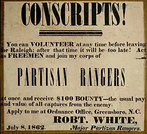 The Partisan Ranger Act drew many Southern men who were reluctant to serve in a regular army. but were eager to enroll in a partisan corps with the same pay as conventional soldiers.[6] The unintended consequences of the Partisan Ranger Act were beliefs all forms of unconventional warfare were approved, including violence toward civilians.[7]