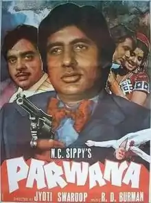 Parwana (lit. Moth) is a 1971 Indian Hindi-language psychological thriller film directed by Jyoti Swaroop. It stars Amitabh Bachchan, Navin Nischol, Yogeeta Bali, Om Prakash in lead roles and Shatrughan Sinha in a special appearance. In this film, Amitabh Bachchan plays his first negative role as an infatuated lover-turned-murderer.[1]
