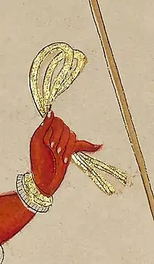 Pasha is a common attribute of Ganesha,[1] the Lord of removing obstacles; a pasha represents his power to bind and free obstacles. Yama, the god of death, uses the Pasha to extract a soul from a being's body at the time of death.[2] In sculpture, it is depicted as two or three bound into one or a double loop.[3]