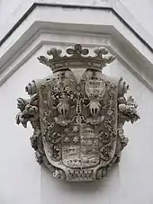 The building is a block corner house in the classicist style. At the corner is the Pasqualati coat of arms. The rectangular portal with builder's inscription leads into a driveway and a courtyard with wrought iron lantern and fountain. The spiral staircase, made from Kaisersteinbruch stone, still has its original wrought-iron railings and lattice doors. Roof truss and cellar vault also date from the period of original construction. In the basement are to be found remains of the city fortifications. A plaque commemorates Ludwig van Beethoven.[6]