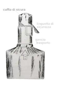 For an effective launch the bomb must be handled with the right hand on the handle and using the left hand to withdraw the safe. To be properly launched it had to be thrown by standing up with a circular path from 'top down and possibly at least 20/25 mt.