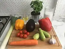 | Main ingredients | carrots, onions, leeks, garlic, zucchini, celery, yellow and red capsicum, cherry tomatoes, salt, black pepper, olive oil |