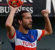![]() McMahon making a throw-in while playing for FC Cincinnati in 2016 | |||