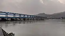 The Bhimgoda Barrage, also referred to as the Bhimgoda Weir or Bhimgoda Head Works, is a barrage on the Ganges River at Har ki Pauri near Haridwar in Haridwar district, Uttarakhand, India. Built as the headworks of the Upper Ganges Canal, an initial barrage was completed by 1854 and replaced twice; the final one completed in 1983. The primary purpose for the barrage is irrigation but it also serves to provide water for hydroelectric power production and control floods. The area behind the barrage is known as the Neel Dhara Bird Sanctuary and is a popular destination for various waterbirds and tourists.